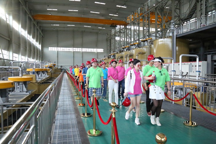 27日下午,全國知名商學院和世界華人音樂家協會的嘉賓們走近綠色礦山,首先參觀了礦業科普教育基地和礦業指揮中樞科技中心,在金徽股份獨有的礦工服務樓和出礦主平硐口,他們觀看了正在工作中的無人駕駛牽引機車,信息管理一體化的選礦磨礦車間、快速運轉的自動化提升設備、礦山安全救護中心和獲得國家專利的尾礦庫更是吸引了嘉賓們的眼球。四星級標準的員工公寓樓和民工公寓樓,干凈文明的綠色廠區充分體現了金徽股份尊重知識、尊重技術、關愛員工的人本理念。參觀結束后,金徽股份與各大商學院共同在喜氣洋洋、金碧輝煌的金徽大廳舉辦了聯歡晚會。