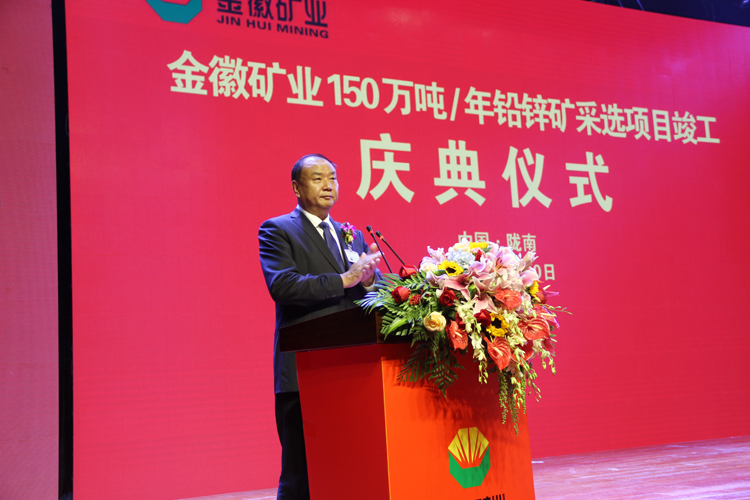 慶典儀式上,金徽股份董事長耿增輝首先登臺致辭。耿董事長代表金徽股份對各位嘉賓、各位朋友的光臨,表示最熱烈的歡迎!對長期以來給予金徽股份關心、關愛和幫助的社會各界人士致以最誠摯的感謝。其次,耿董事長從金徽股份的建設理念、建設歷程、建設規模等方面全面介紹了金徽股份整體情況;從采礦、選礦、尾礦、安全保障、環境保護、供水供電、綠化旅游和行政服務等方面介紹了八大工程;同時,耿董事長用“五個注重”:注重環境保護、注重科技創新、注重安全保障、注重關愛員工、注重社會責任介紹了金徽股份在項目開發建設過程中的具體做法。耿董事長強調:金徽股份150萬噸/年鉛鋅礦采選項目的順利建成,是得益于亞特集團超前理念的引領,得益于各合作單位的鼎力配合,得益于社會各界朋友的大力支持。