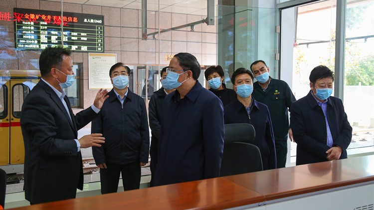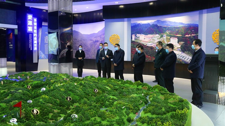 歐陽堅主席一行先后深入科技指揮中心、磨浮車間、礦工服務樓、停機坪、充填站、尾礦庫、員工活動中心等地,實地查看了企業疫情防控措施落實、復工復產和生產運營情況。在科技指揮中心,歐陽堅主席詳細了解了金徽股份綠色礦山建設成果和科技創新成果,對金徽股份認真貫徹落實創新、協調、綠色、開放、共享發展理念,把金徽股份打造成全國綠色礦山的典范給予高度贊揚。在采礦調度中心聽取陪同人員關于疫情防控和復工復產工作匯報后,又仔細詢問了金徽股份機械化采礦水平和自動化建設情況。