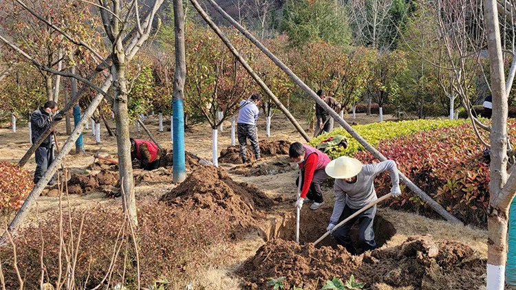 植樹活動現場,大家在做好疫情自我防護的同時,干勁十足。他們三五人自發成組,相互配合、默契協作,或扶樹填坑、或揮鍬培土、或提桶澆水,每個環節銜接有序,合力栽下一棵棵樹苗,也共同播下疫散春來、華枝春滿的勃勃生機。經過幾個小時的努力,一株株新栽種的冬青、石楠、廣玉蘭、雪松等樹木迎風而立,為金徽股份增添了一片片濃濃春意。